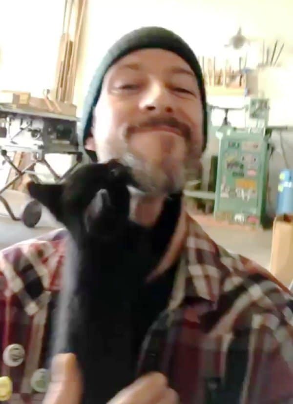 “Eu comprei-lhe alguma comida e perguntei se ele pertencia a alguém, mas ninguém o procurou, então eu o adotei”, disse Justin. Assim, o gatinho recebeu o nome Grizzly e passou a frequentar a marcenaria de seu novo dono, como se ele tivesse vivido lá sua vida toda.