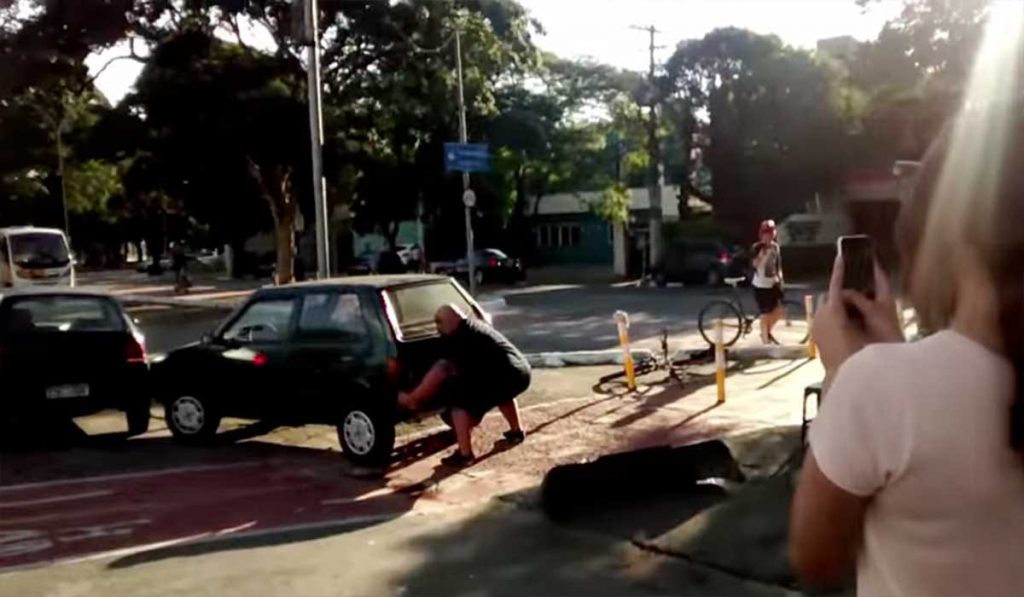 Motorista estaciona carro na ciclovia. Veja o que esse ciclista faz para resolver o problema