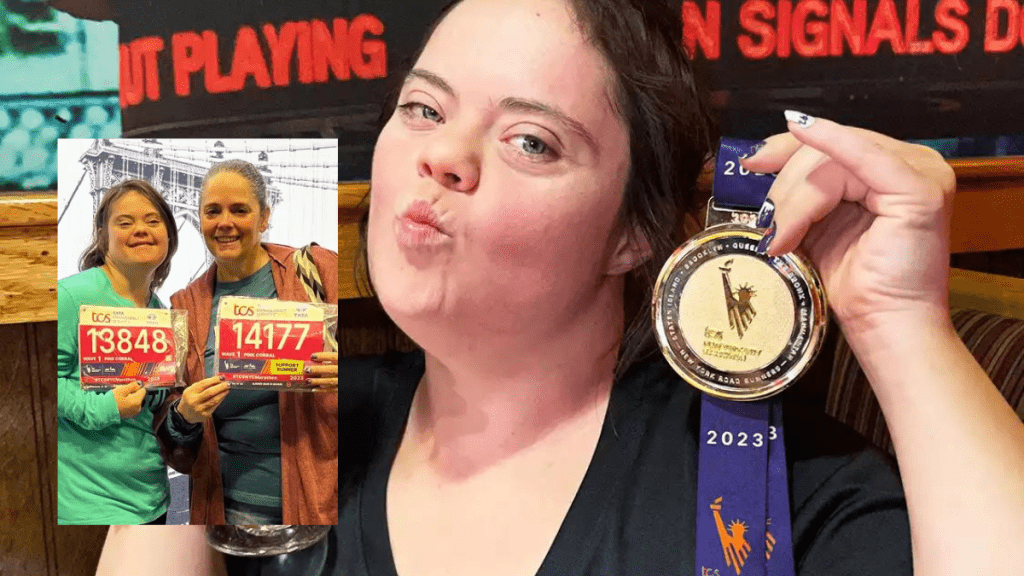 Mulher com Down termina maratona de Nova York em homenagem à avó com Alzheimer.
