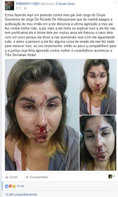 Já Joel respondeu em sua página: “Peço desculpas a Fabiane Boldrini. Como já pedi. Realmente o fato que aconteceu só me faz lembrar o quanto me dediquei a minha família. Errei quando bati, após ser mordido pela mesma, que publicou no Face de seu filho as fotos que aí estão”.