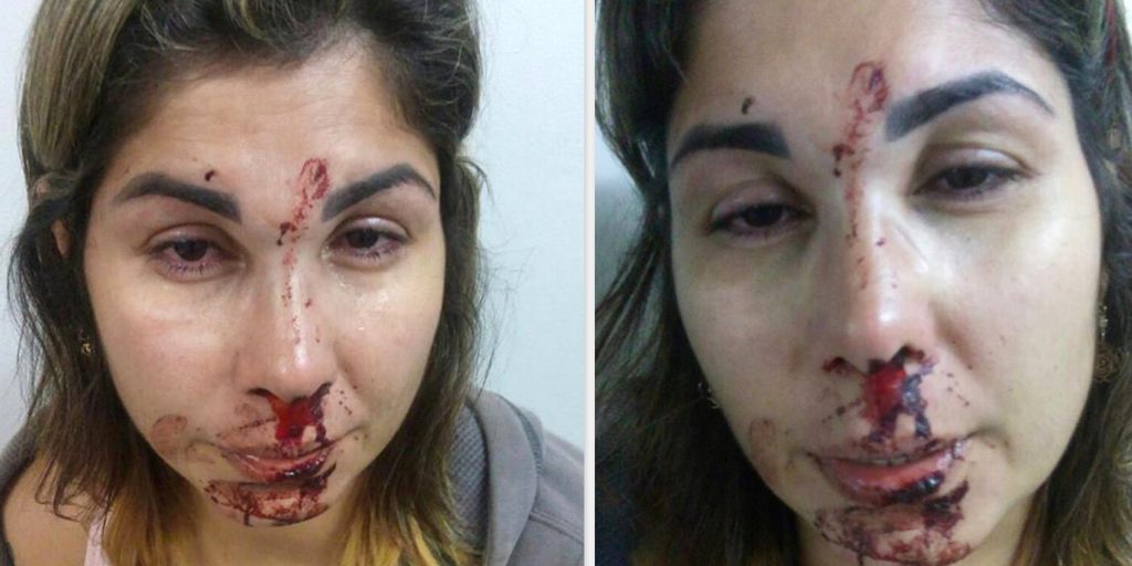 Felizmente, alguém fez alguma coisa. A história é de Fabiane Boldrini, que teve seu nariz fraturado pelo marido, sargento do exército, Joel Jorge. O motivo? Ela teria pedido a separação ao vê-lo chegar bêbado em casa. Foi aí que o filho decidiu agir e publicou uma foto em seu Facebook, tirada momentos depois da agressão, onde a mãe aparece ensanguentada.