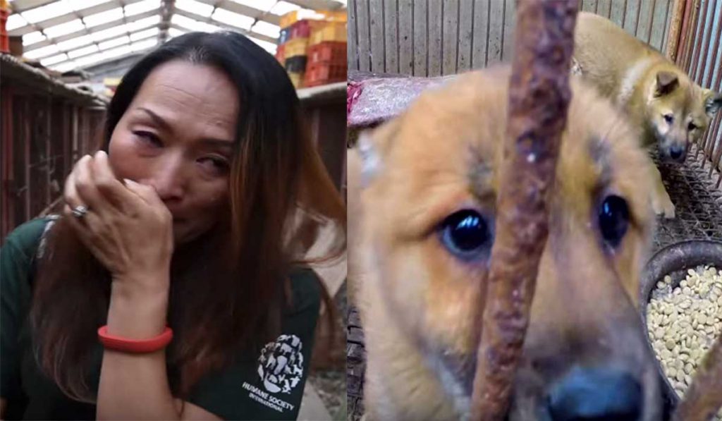 Mulher vai às lágrimas ao conhecer o lugar de onde veio o seu cão: uma fazenda que vende carne de cachorro