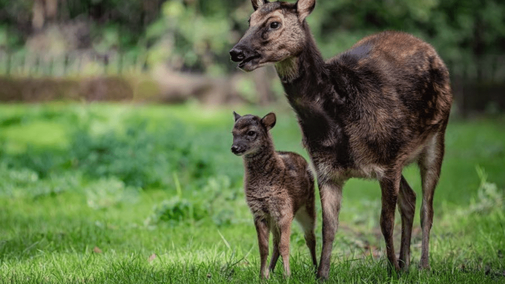 Um cervo pintado das Filipinas, um dos animais mais raros do mundo, nasceu para deleite dos conservacionistas no Zoológico de Chester, na Inglaterra.