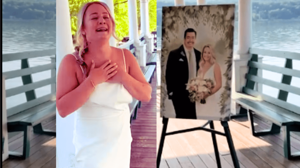 No dia do casamento, noiva que perdeu o pai ganha pintura de presente e se emociona