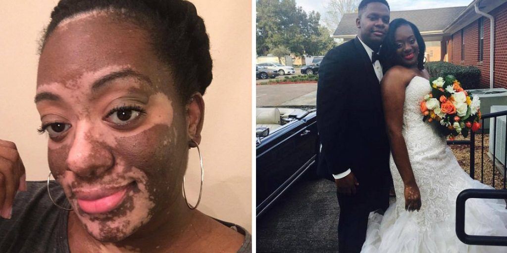 Kandice Benford, 32, se estressou tanto com seu casamento que seu organismo acabou sendo afetado. Nos meses que anteciparam o “grande dia” a noiva começou a notar que manchas que caracterizam o vitiligo estavam se espalhando cada vez mais pelo seu corpo. No final de sua adolescência, Kandice já havia percebido o surgimento de pequenas manchas em suas mãos. Mesmo com as manchas pequenas aumentando gradativamente, a jovem nunca deu atenção.