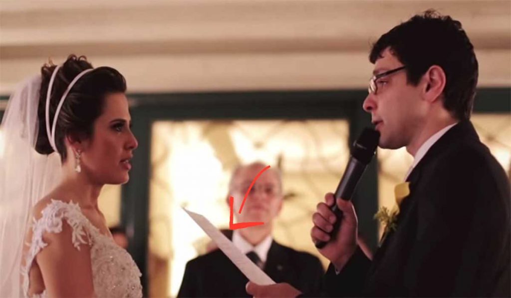 Essa é uma das cartas mais belas que já ouvi e traduz muito bem o significado de um matrimônio. Pode ser um poema, frases de efeito ou um trecho do livro do Mario de Andrade, não importa! Qualquer declaração é bem-vinda quando a intenção é expor um sentimento verdadeiro.