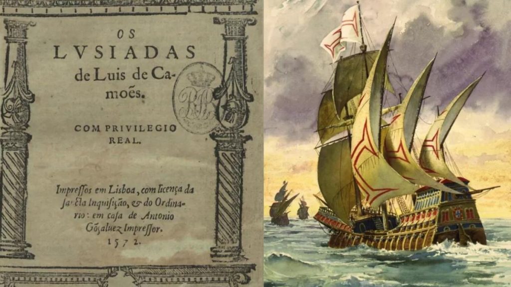 Trata-se do poema épico Os Lusíadas, que narra a descoberta, pelo navegador português Vasco da Gama (1469-1524), da rota marítima para a Índia.