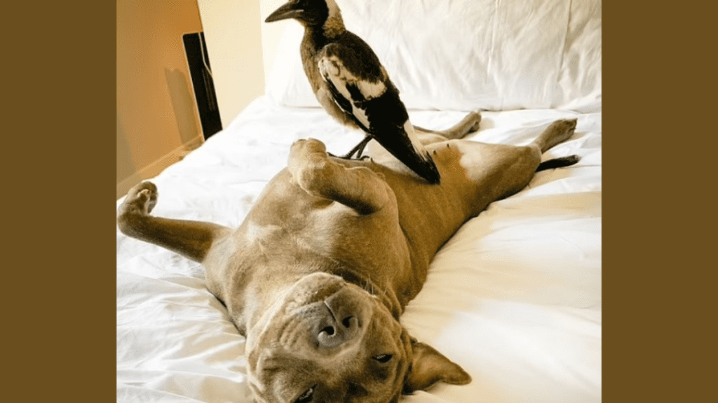 Uma pega-australiana, ave da família Artamidae, parentes distantes dos corvos, começou a latir e uivar como um cão após se tornar a melhor amiga de um pitbull. A dupla improvável registram lindos momentos de companheirismo.
