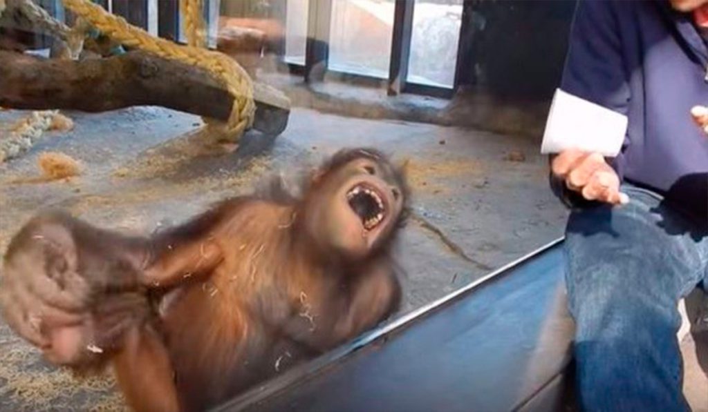 Em um zoológico de Barcelona, na Espanha, Dan Zaleski fez um truque de mágica na frente de uma das jaulas onde mora um orangotango. Com um copo descartável, ele fez uma cereja desaparecer, e a reação do orangotango é mais do que hilária! Veja abaixo: