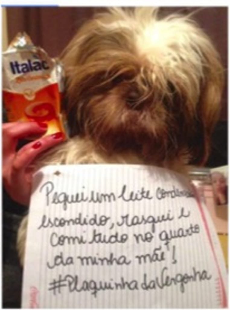 Alguns donos tornaram as travessuras em fotos engraçadas e fofinhas com a “plaquinha da vergonha”.