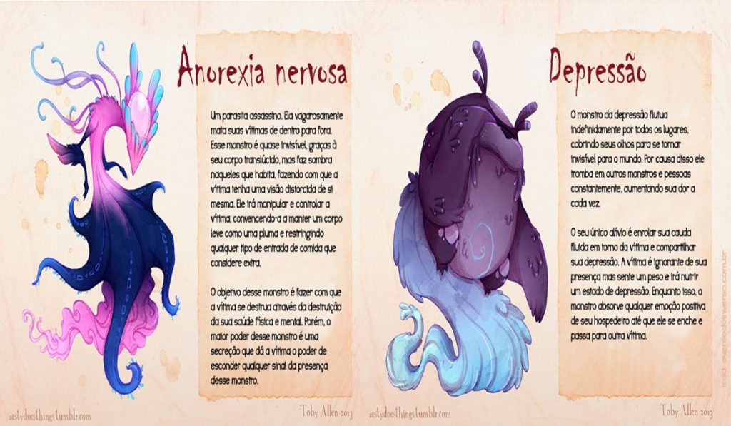 Toby Allen sofria de ansiedade e começou a pensar como ela seria se fosse um monstro. Assim, ele começou a ilustrar outras doenças mentais e tratá-las desse modo para que pudesse combatê-las. Essa ideia foi tão incrível que tem chamado atenção de muita gente. Também é uma boa maneira para que as pessoas consigam entender melhor como são esses casos, que muitas vezes são complexos demais na hora de serem explicados.