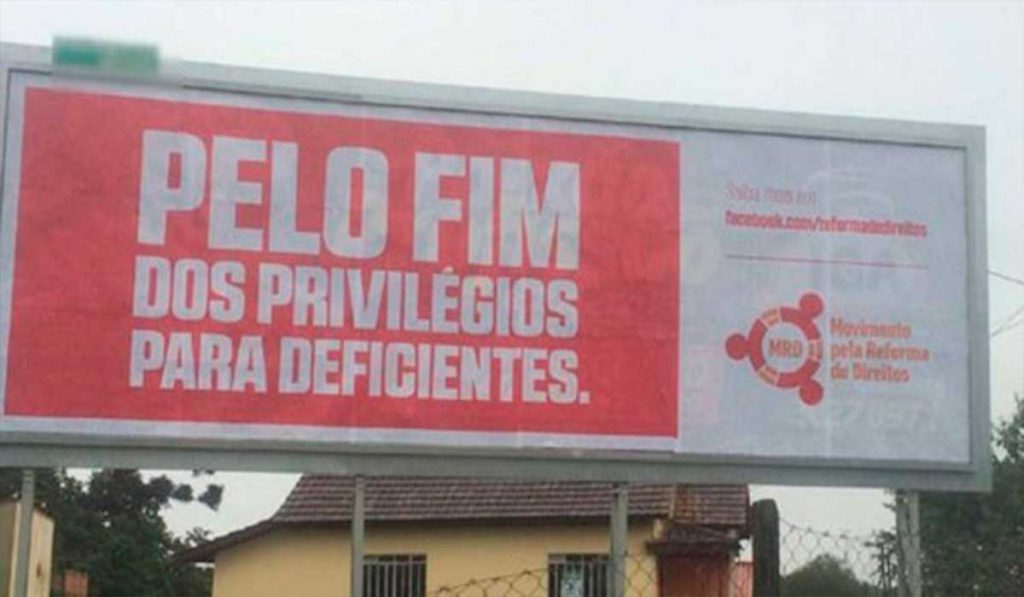 Na última semana, um outdoor foi instalado em Vista Alegre, Curitiba (PR), pedindo pelo “fim dos privilégios para deficientes”. É claro que isso acabou provocando uma enorme polêmica e gerando a revolta de milhares de pessoas em toda a internet após a foto do outdoor se espalhar na web.