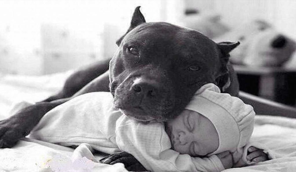 Nós trouxemos nossa filha para casa em uma cadeirinha de carro e os dois cachorros a cheiraram e lamberam com o rabo balançando. Eu tive que tirar o Zack de perto dela porque ele não parava de lambê-la. Ele virou imediatamente o protetor da minha filha, e sempre que ela estava deitada em um cobertor no chão, ele sempre tinha que colocar uma pata em cima do cobertor.
