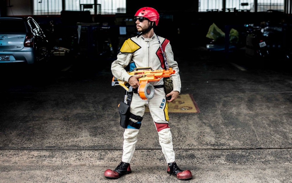 Rafael se veste de palhaço e leva alegria às pequenas comunidade do país ao lado de sua companheira