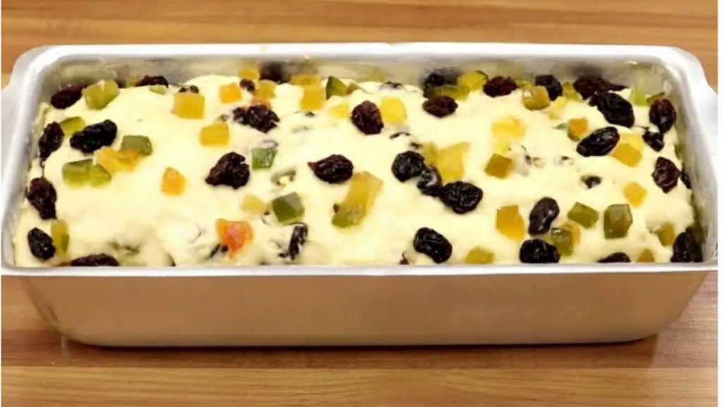 - Acrescente as frutas cristalizadas e as uvas passas, misture bem com uma espátula para incorporar.