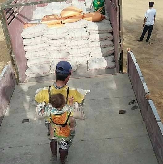 E para que seu filho não passe fome e enfrente outras dificuldades, este pai teve que fazer a única coisa que estava em suas mãos. Ele leva seu filho em suas costas para o trabalho, é incrível como o homem carrega os sacos pesados de cimento segurando uma criança nas costas. Ele teve que fazer isso para que o pequeno não ficasse sozinho em casa e ele trabalhasse para conseguir dinheiro. O homem conta que ninguém em sua família poderia ficar com o jovem, então essa foi sua última e única alternativa.