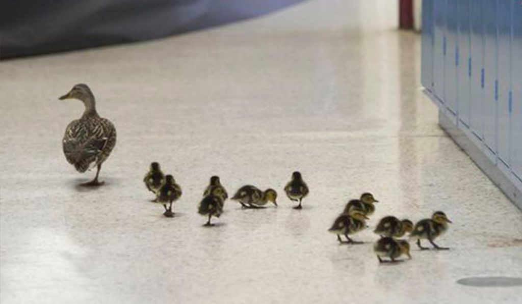 Na escola primária de Grover, em Massachusetts, nos EUA, os professores e alunos têm uma adorável tradição todos os anos. Quando chega a primavera, eles guiam uma pata junto de seus filhotes, para que eles cheguem são e salvos no riacho que fica fora do local para que eles possam passar uma temporada.