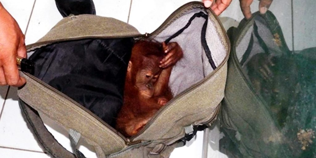 Estamos nos afundando cada vez mais. Parece impossível ver tanta crueldade no ser humano. Um desses exemplos é o tráfico de animais. Um caso que aconteceu foi a descoberta de filhotes de chimpanzés enfiados dentro de bolsas, preparados para embarcar em aviões.