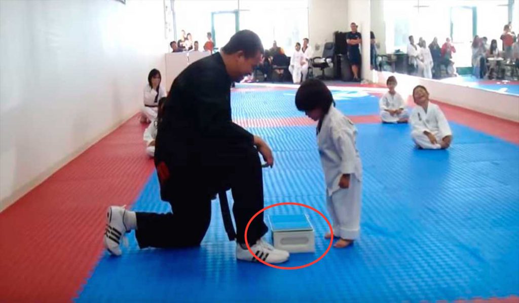Durante um teste para ganhar a faixa branca, o professor o desafia a quebrar uma tábua com um golpe de taekwondo. As tentativas e esforço do pequeno lutador são admiráveis e, sem dúvida, é um dos vídeos mais fofos já registrados.