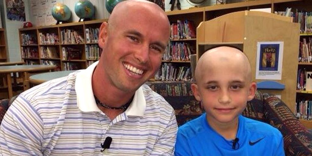 Professor raspa a cabeça para apoiar aluno com doença autoimune
