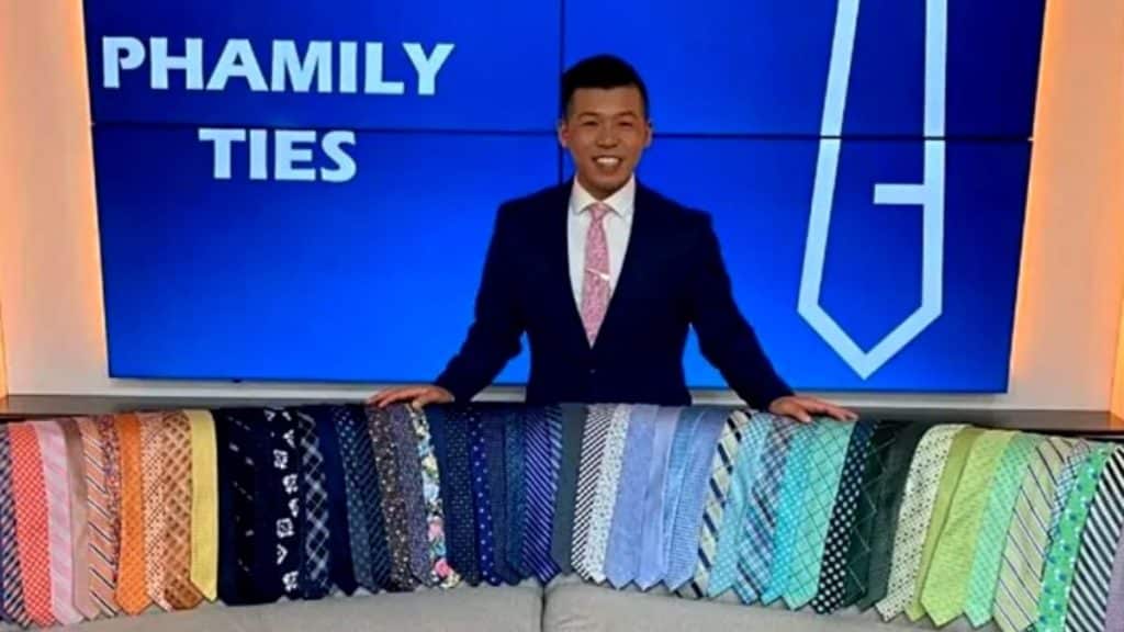 Tim Pham, âncora matinal do programa “Up with KREM” em Spokane, Washington, ao USA Today , colecionou 250 gravatas ao longo de seus 8 anos de trabalho.