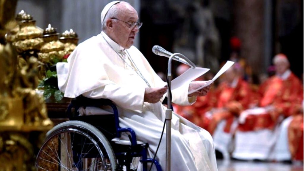 Papa Francisco, tem sua capacidade de andar limitada devido a uma condição inoperável no joelho que o obrigou a usar uma cadeira de rodas nos últimos meses.