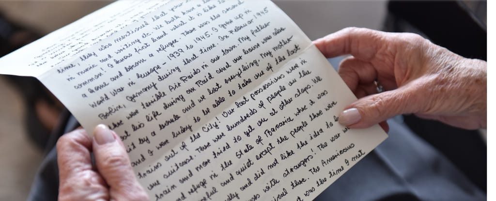 Assim começa a carta de Helga Kissel, de 87 anos, escrita à mão para Sajeda, uma refugiada síria de 16 anos da Jordânia. As duas nunca se conheceram.