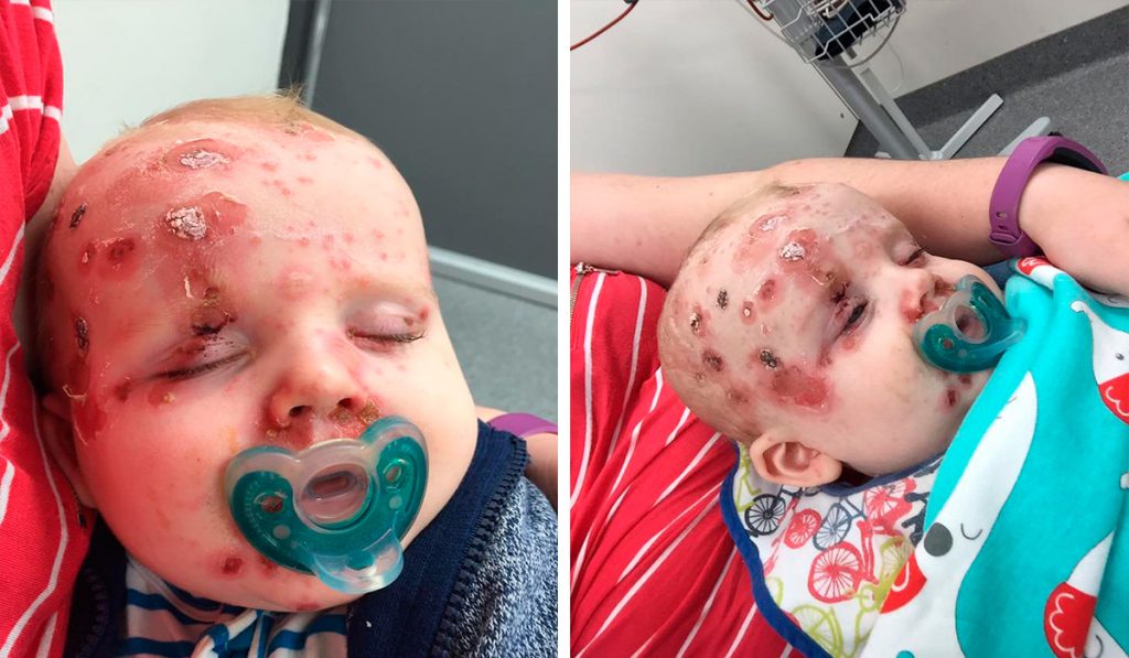 É bem difícil olha a foto de Elias por muito tempo. Com apenas 11 meses, ele contraiu catapora e a doença cobriu seu rosto e corpo, fazendo com que cicatrizes, feridas e bolhas dolorosas o deixasse nesse estado crítico. Mas, por mais terrível que essas imagens sejam, elas não mostram nem parte do sofrimento causado por essa infecção.