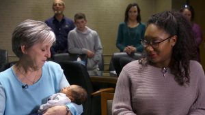 O encontro foi emocionante, e Jamie pôde finalmente segurar o bebê de Connie em seus braços.