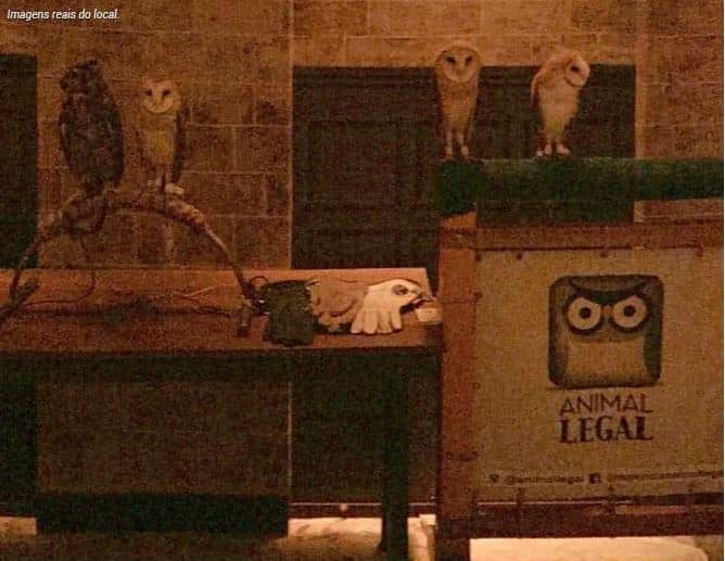 Para piorar a situação, elas são amarradas pelas patas para que as pessoas possam tirar fotos com elas, além de serem “enfeite” para a produção. As corujas são colocadas perto dos visitantes, que pagam até R$ 60,00 por ingresso para entrar na exposição.