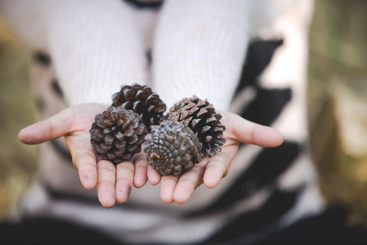 Evite exageros: o ideal é que as pinhas pareçam integradas ao ambiente, compondo o espaço de maneira orgânica e sutil.