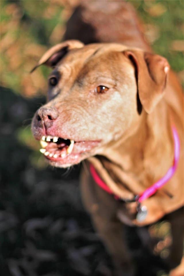 Segundo funcionários do local, a cachorrinha é doce e amigável, além do sorriso mais especial e fofo do mundo! Mesmo com o maxilar deformado, ela é exclusiva com seu charme todo!