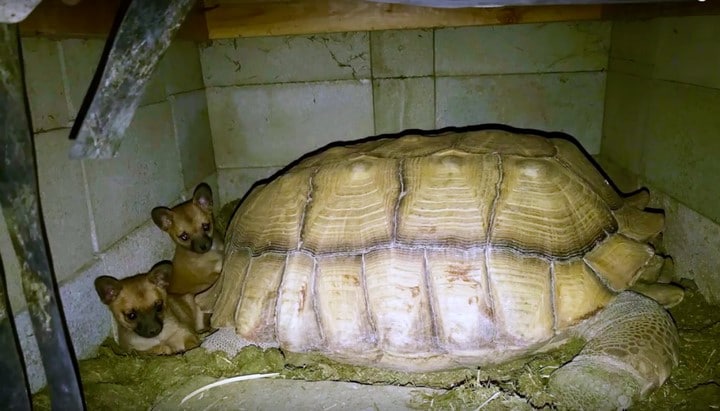 Quando Andrea pensou que os cachorrinhos haviam fugido logo em seu primeiro dia juntos, ela os encontrou encolhidos ao lado da tartaruga. Depois disso, outro dia a mulher também passou vários minutos os procurando, achando que tinham desaparecido, e os encontrou outra vez se aconchegando no casco de Goliat. Foi quando ela percebeu, de uma vez por todas, que eles haviam a adotado como mãe e formado um relacionamento muito bonito.