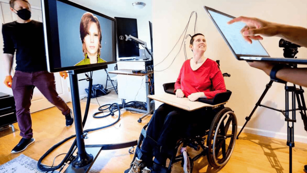Uma mulher paralisada voltou a falar depois que seus sinais cerebrais foram interceptados e transformados em um avatar falante, completo com expressões faciais e amostras de som da voz real da mulher, tudo pela primeira vez no mundo.