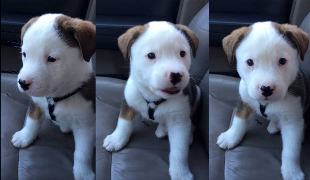 Buck é um cachorrinho de 8 semanas que não se sente nada confortável em soluçar pela primeira vez.