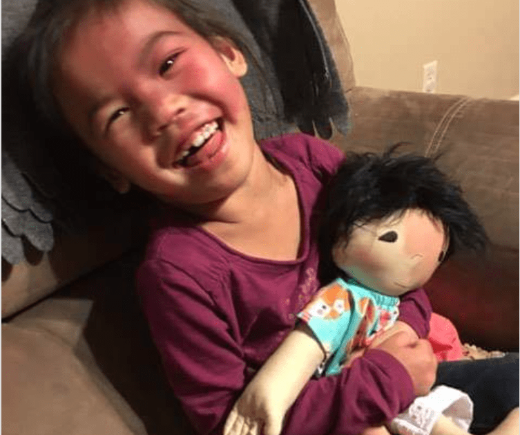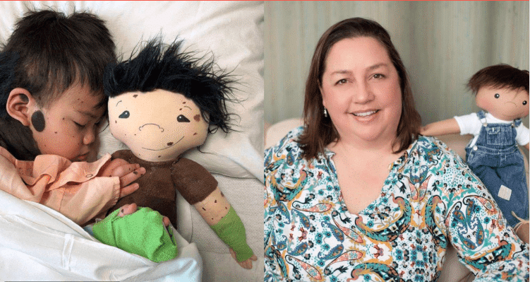 A mãe, Amy Jandrisevits, é uma fabricante de bonecas de Wisconsin, EUA. Ela faz bonecas parecidas e incrivelmente fofas à mão para crianças com deficiências e doenças terminais.