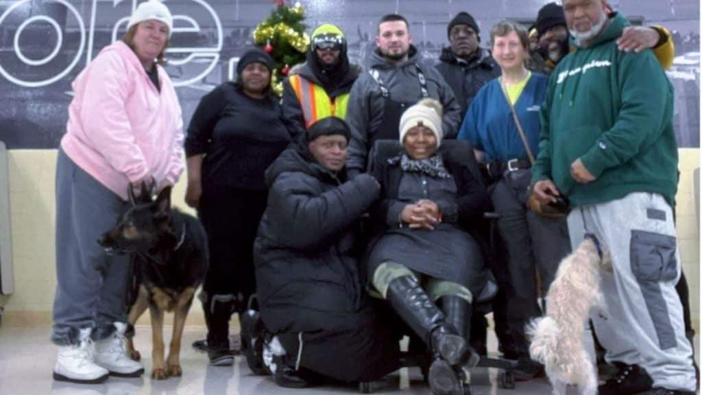Depois de invadir, Jay voltou para a tempestade e encontrou outras pessoas que estavam congelando em seus carros e os trouxe para dentro – 24 no total e 2 cães.