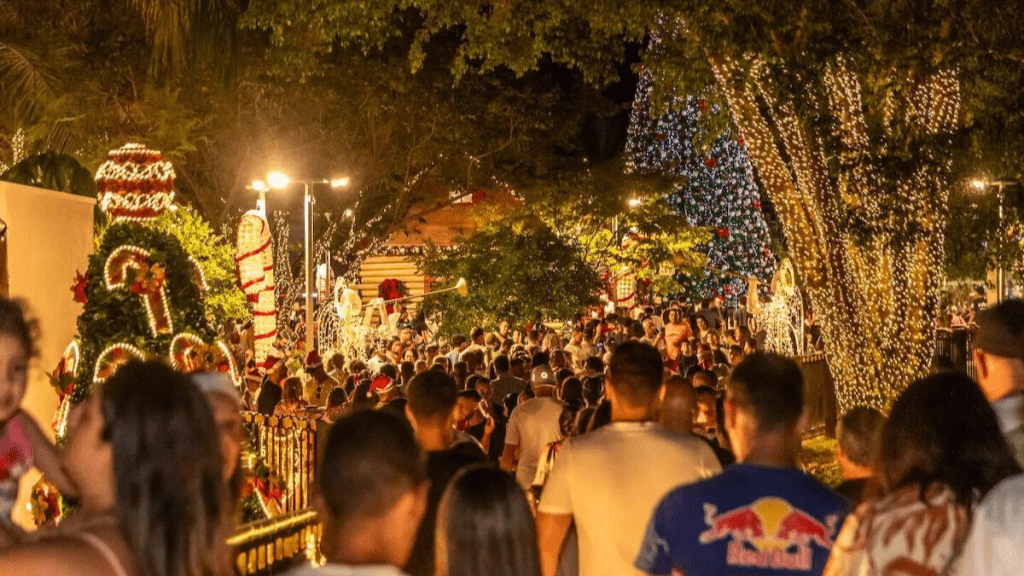 Uma cidade encantadora toda decorada para o Natal e pertinho de São Paulo! Isso é Guararema! Localizada a 80 km da capital paulista com acesso super fácil pela rodovia Carvalho Pinto, o local é famoso pelo festival natalino anual que atrai milhares de visitantes. O Cidade Natal 2022 tem como tema “A Magia volta a Brilhar”. Neste ano, as decorações podem ser vistas em 12 prédios, cinco quilômetros de ruas e vias, sete praças e parques, além de seis árvores de Natal espalhadas pela cidade.
