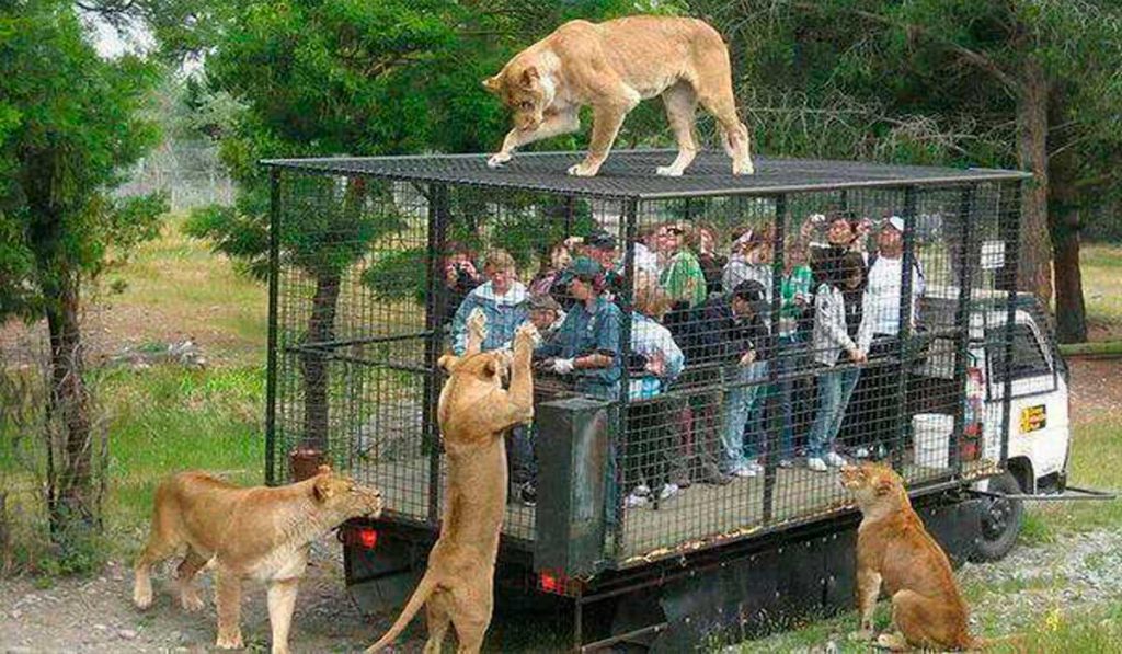 Essa reserva natural decidiu que a jaula era a melhor maneira de separar os humanos dos animais e quis criar uma experiência para os espectadores de modo que eles infringissem a natureza o menos possível.