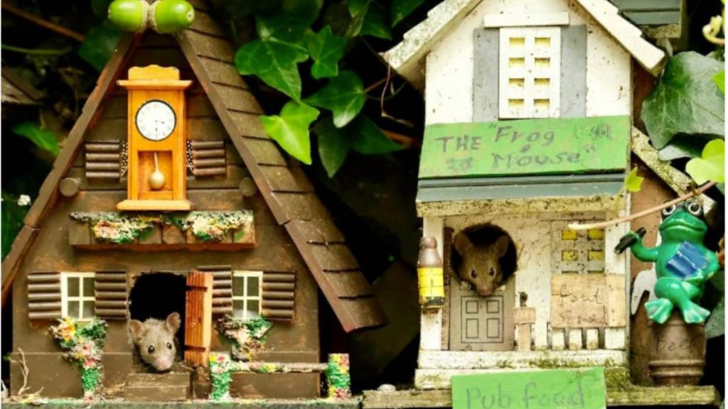 Duas famílias de camundongos ganharam suas próprias casas construídas no jardim de um homem. Eles são alimentados com flores todos os dias e até têm seu próprio bar.