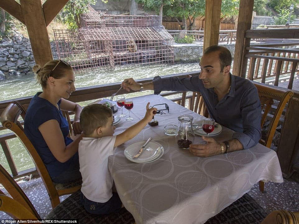 Com o olhar faminto, um urso faminto vê de longe uma jovem família desfrutando um almoço em um restaurante de frente às barras de ferro onde o animal está preso. Dentro do espaço minúsculo, os pobres ursos de um estabelecimento da Armênia não passam de uma mera atração. Sem os cuidados adequados e sem o mínimo de liberdade, os animais selvagens têm sua vida drenada.