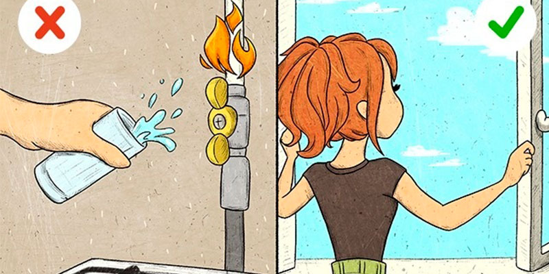 2. Se no local do vazamento o gás pegar fogo, corte o fornecimento pelo registro e abra todas as janelas