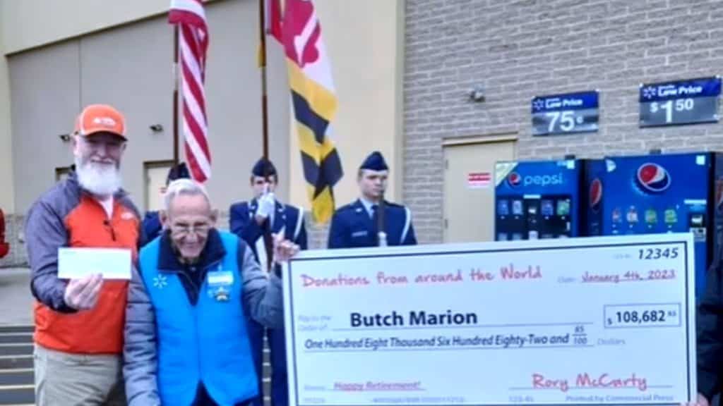 O veterano da Marinha Butch Marion, 82, trabalhava 40 horas por semana como caixa no Walmart em Cumberland, Maryland, quando atendia o ávido usuário de mídia social Rory McCarty.
