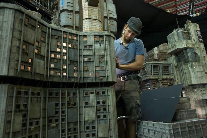 O que seria uma “miniatura” na verdade acabou saindo como um trabalho manual grandioso nos cenários. A responsável pela montagem da cidade cenográfica em miniatura foi a empresa de efeitos especiais Weta Workshop. A marca já trabalhou em grandes sucessos como Thor: Ragnarok e Ghost in the Shell. Cerca de 38 modelos foram feitos no total, e “cada edifício provavelmente levaria cerca de uma semana para fazer”, disse Ben Milsom, o diretor de arte sênior da unidade em miniatura.